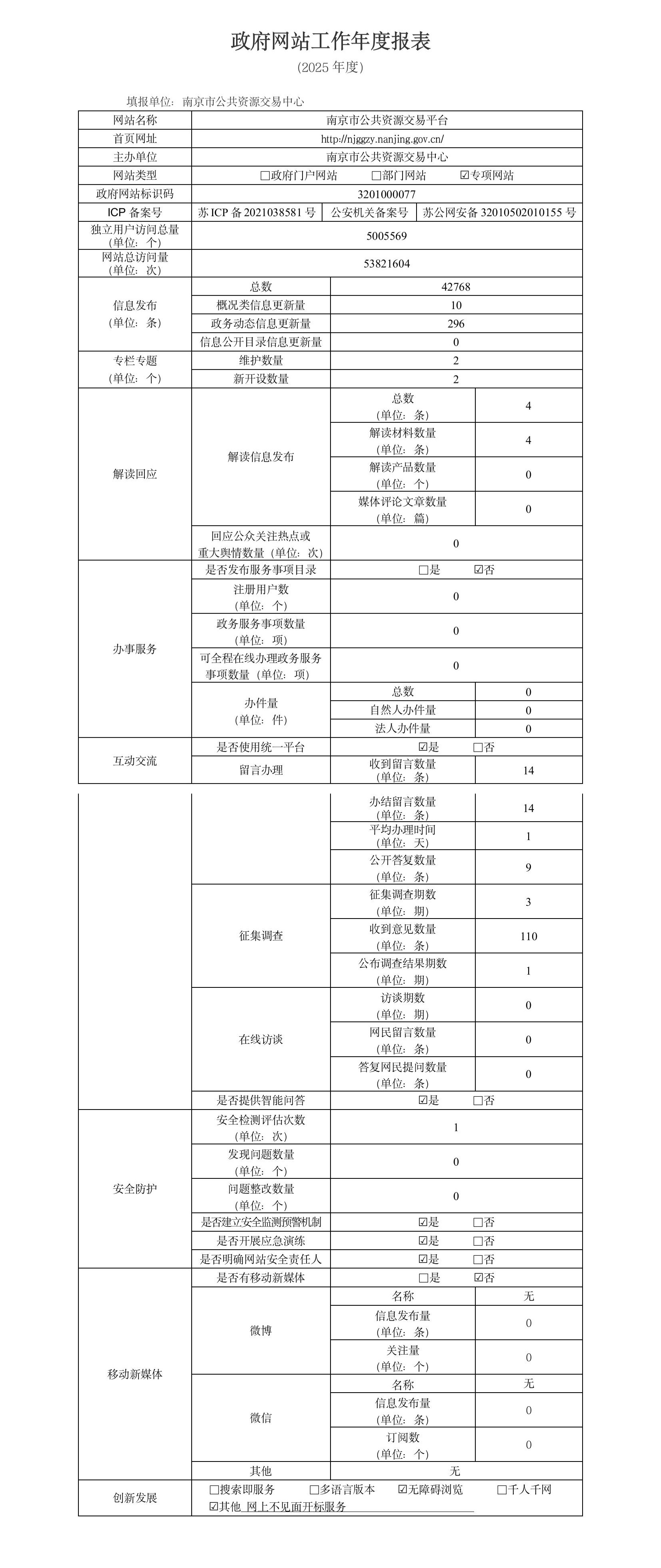 南京市公共资源交易中心政府网站工作年度报表(2025年度)
